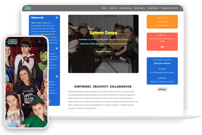 The LCA acting school had grown beyond its old static site, so I built a bold new online home that enabled the school
